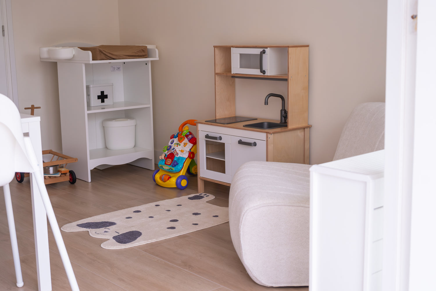 De opvangruimte bij Warm Thuis is ingericht met verschillende speelhoeken die kinderen uitnodigen om te spelen, ontdekken en hun fantasie te gebruiken. Door de verschillende speelmogelijkheden kunnen kinderen op hun eigen manier en in hun eigen tempo de wereld om zich heen verkennen. Zo ontstaat er een fijne balans tussen actief spel, ontdekken en rustmomenten gedurende de dag.